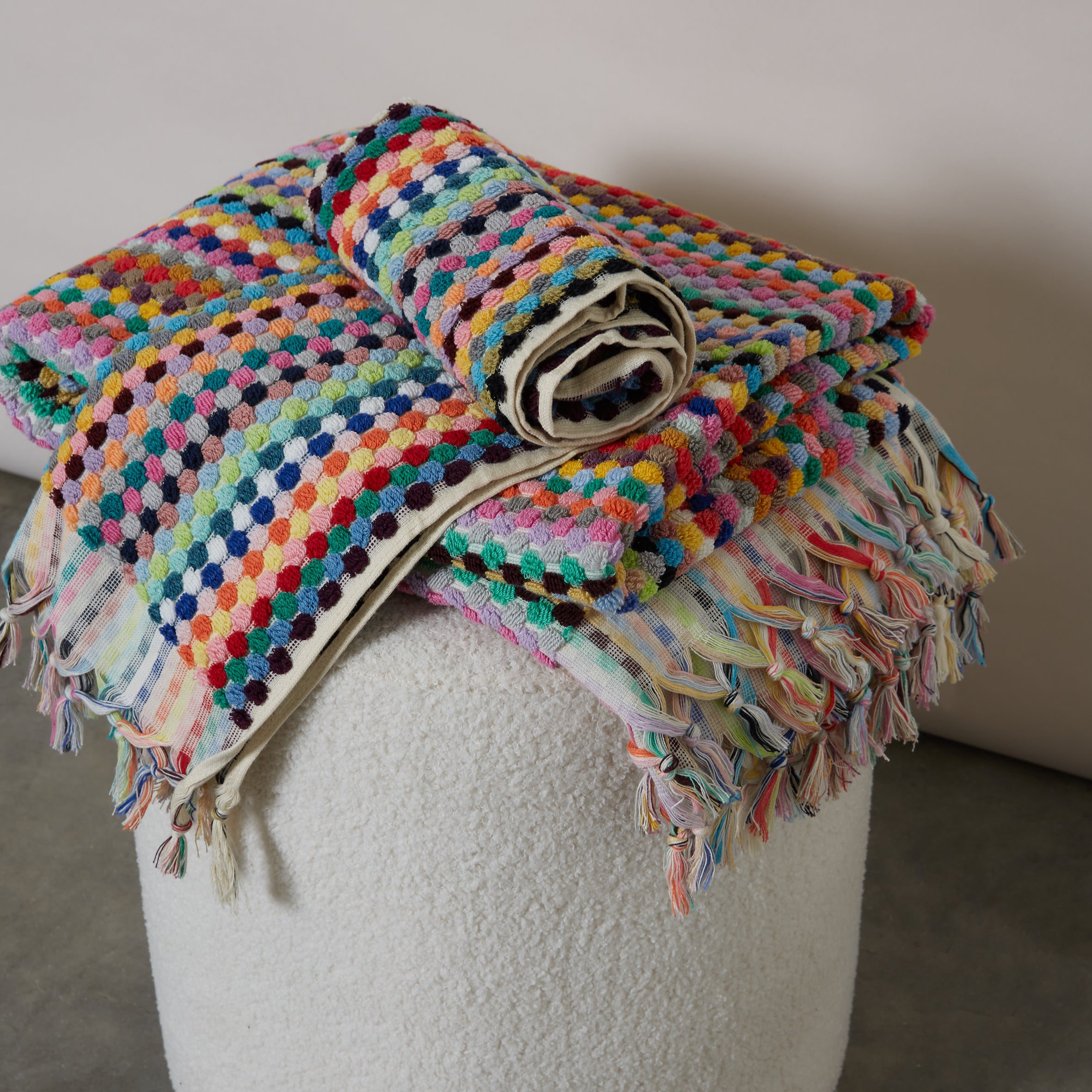 stripes and spots dominate our plush towel collection