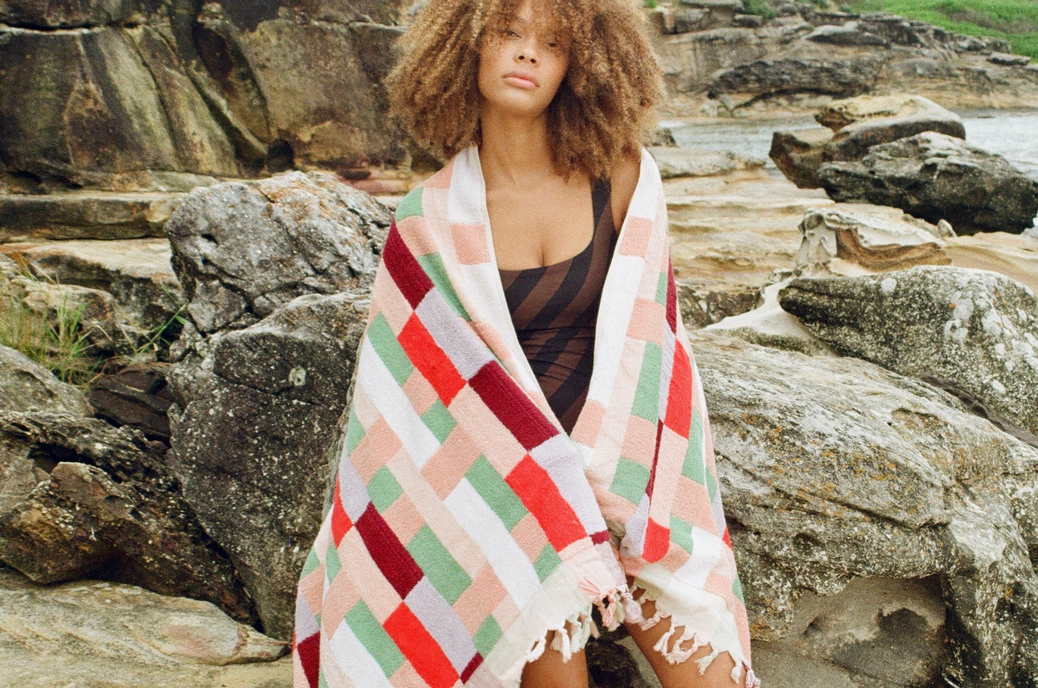 We’re thrilled with the Cubist-inspired design of our Cellito Towel—it’s like having a piece of art that doubles as a luxurious, practical accessory. Crafted with terry towelling on both sides and featuring a vibrant multicolour basket weave, this towel strikes the perfect balance between plush absorbency and lightweight convenience. It's wonderfully thick and absorbent, and you'll never lose sight of its unique look on a busy beach day.