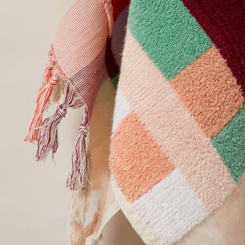 We’re thrilled with the Cubist-inspired design of our Cellito Towel—it’s like having a piece of art that doubles as a luxurious, practical accessory. Crafted with terry towelling on both sides and featuring a vibrant multicolour basket weave, this towel strikes the perfect balance between plush absorbency and lightweight convenience. It's wonderfully thick and absorbent, and you'll never lose sight of its unique look on a busy beach day.